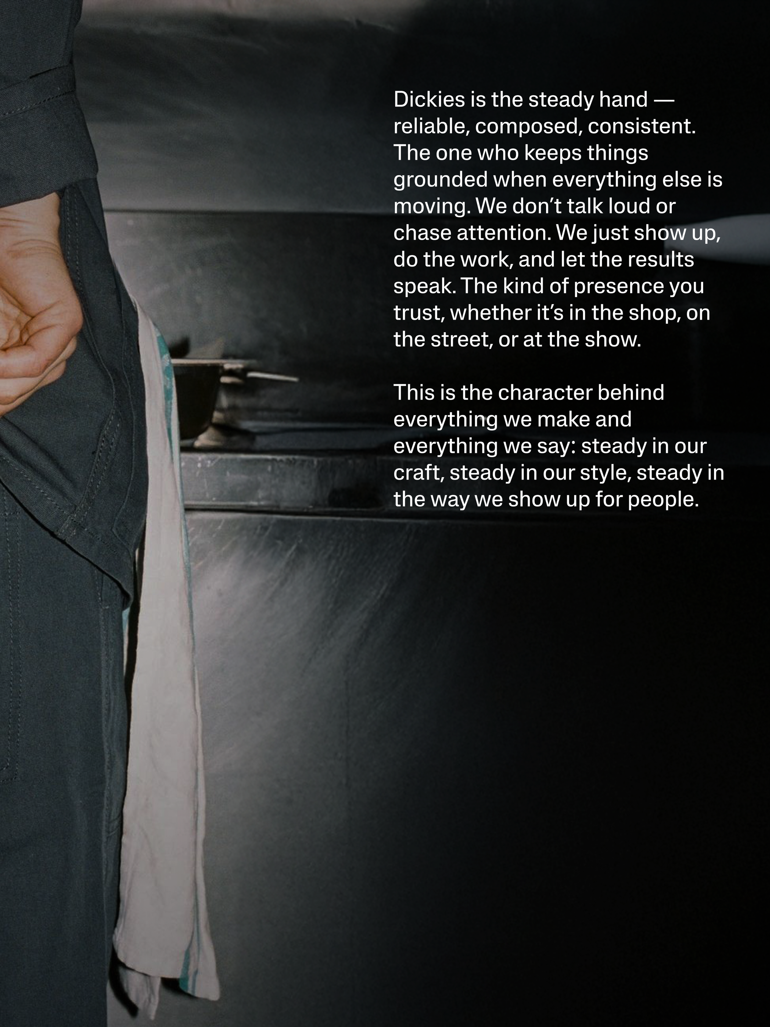 Dickies has always been built on work. Not just as a job, but as a mindset. The product has always carried that attitude. The language hadn't kept up.