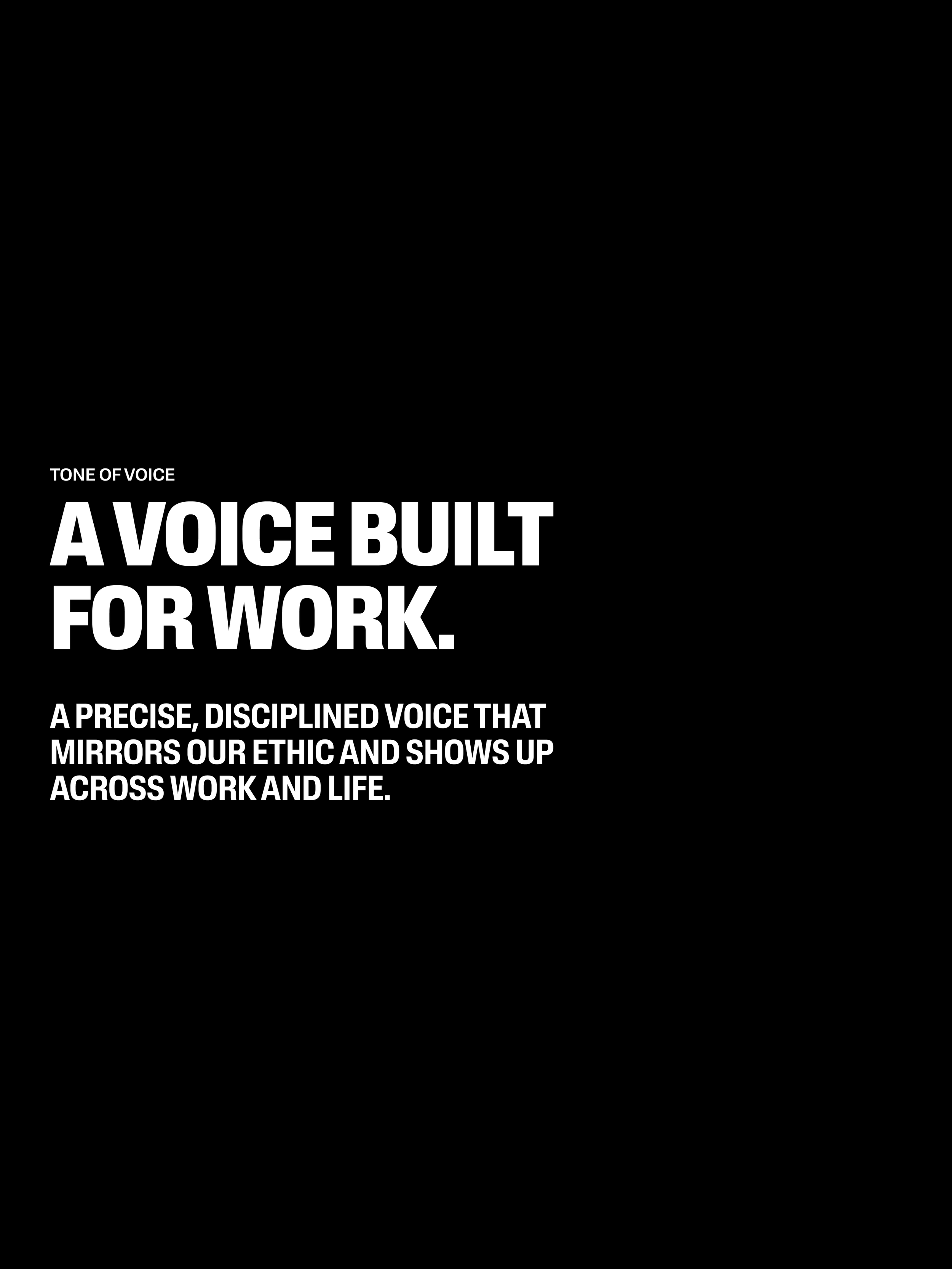 I developed a TOV framework anchored by a single persona: the steady hand. Someone who shows up, does the work, and doesn't need to announce it.